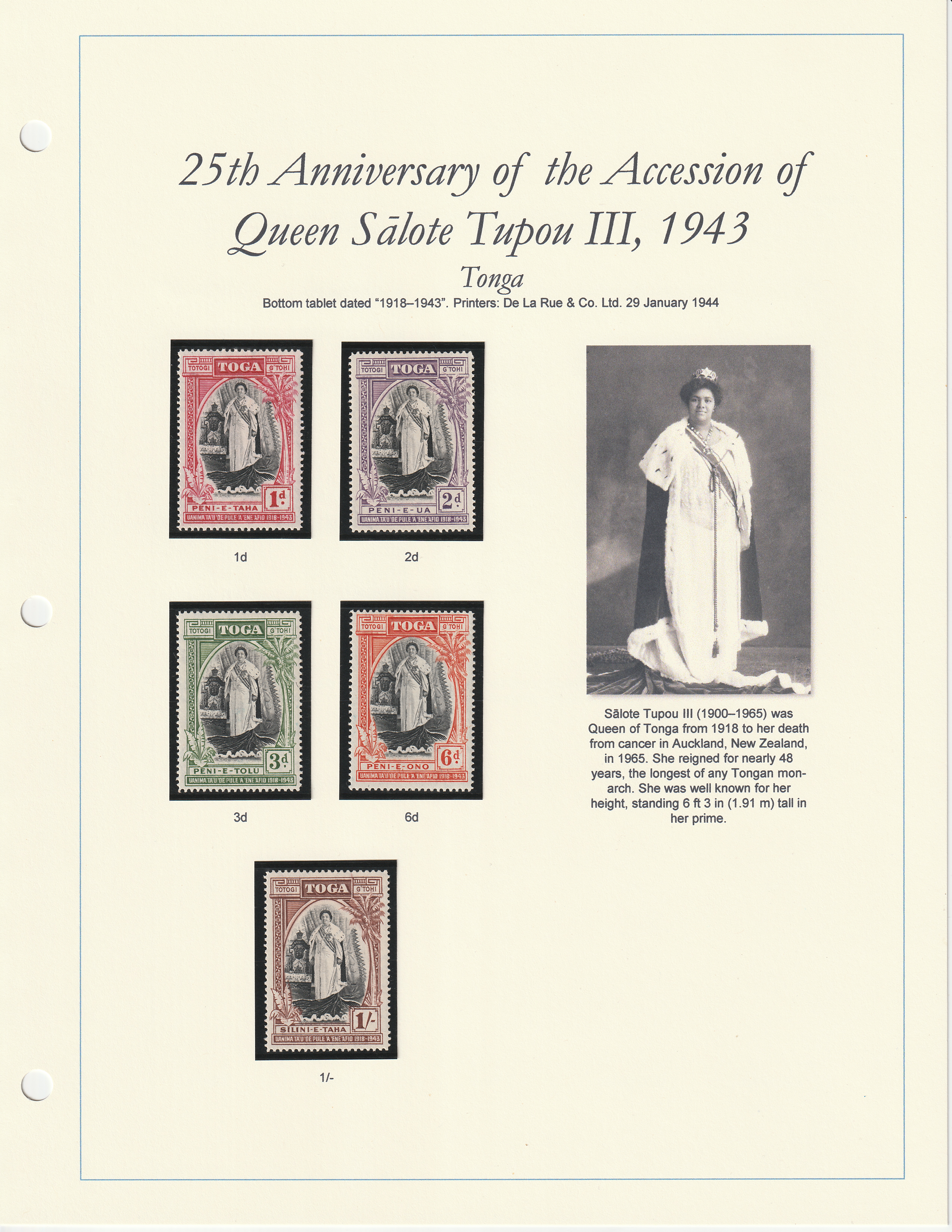 25th Anniversary of the Accession of Queen Sālote Tupou III, 1943